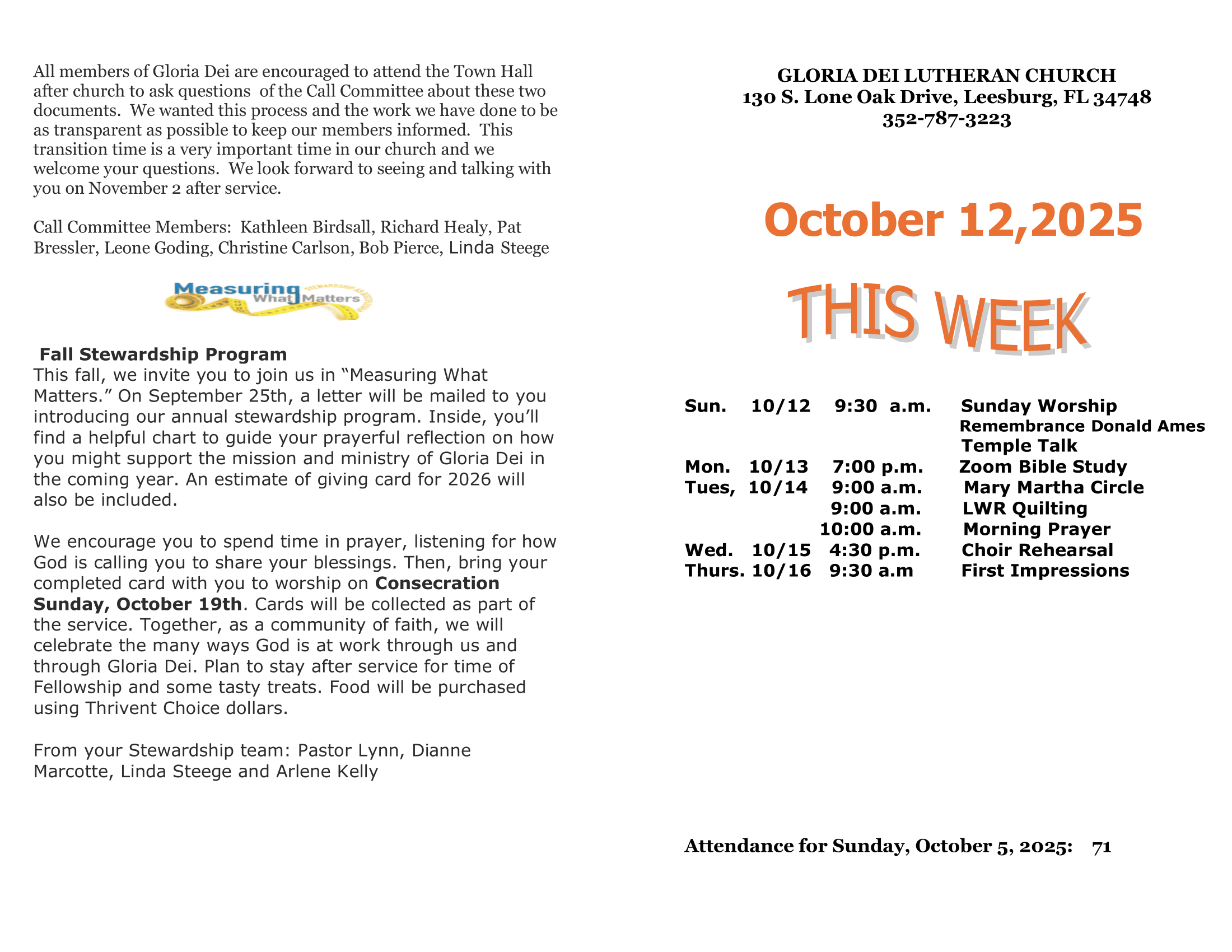 This fall, we invite you to join us in “Measuring What Matters.” On September 25th, a letter will be mailed to you introducing our annual stewardship program. Inside, you’ll find a helpful chart to guide your prayerful reflection on how you might support the mission and ministry of Gloria Dei in the coming year. An estimate of giving card for 2026 will also be included.