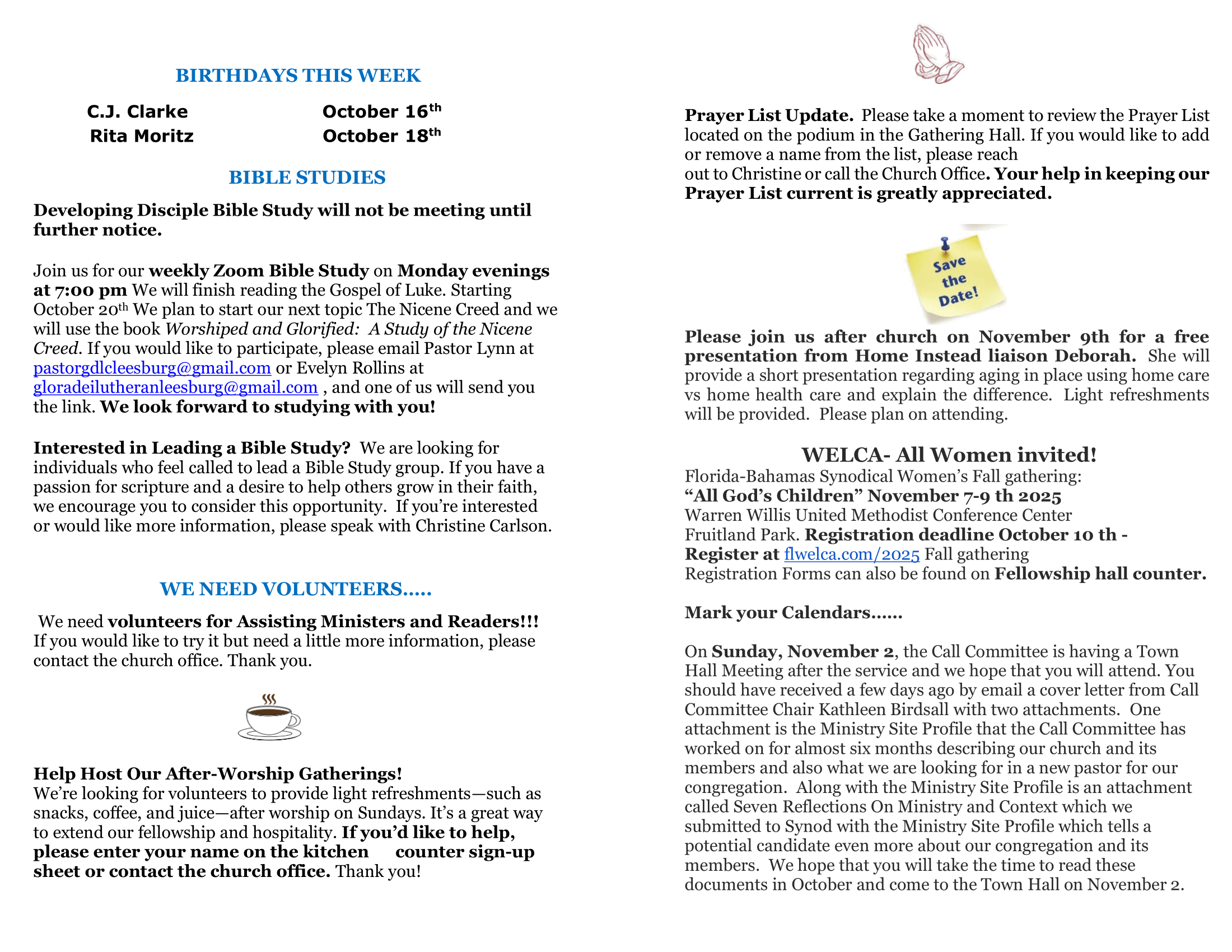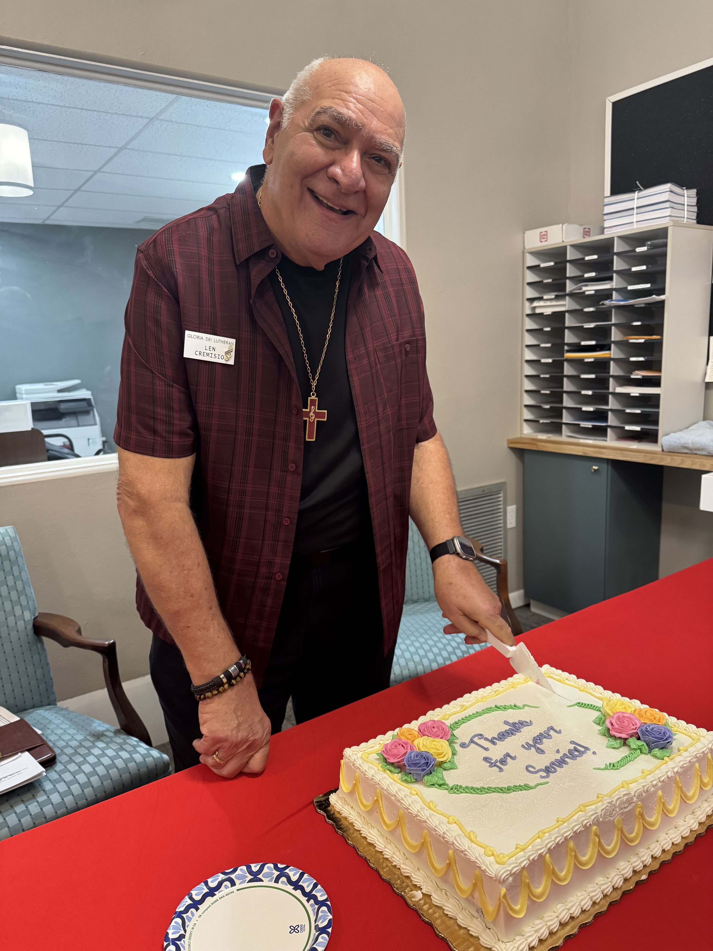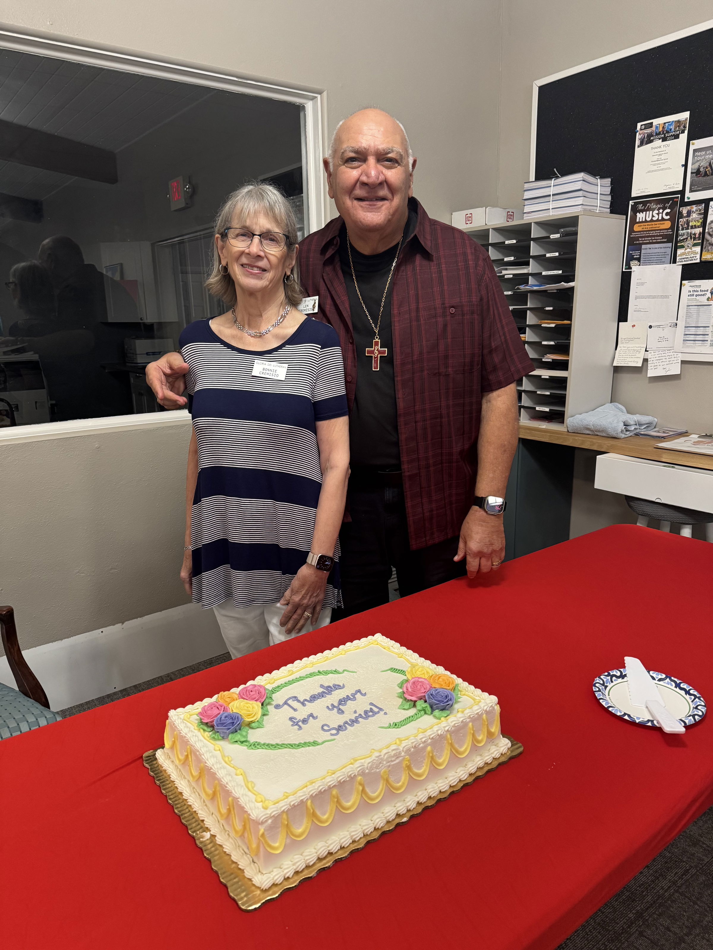 Sunday, 10/5/25, we had a cake for our Music Director, Len Cremisio, who celebrated his first year anniversary of service here at Gloria Dei, along with his lovely wife Bonnie.